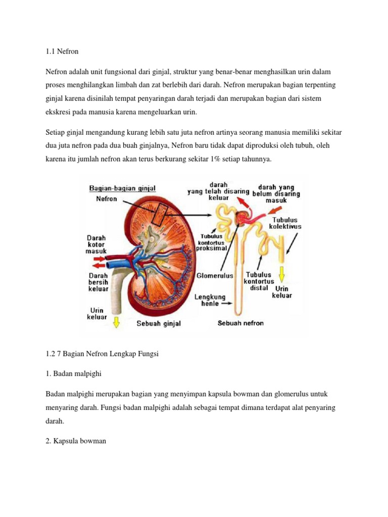 Ada sekitar 1000000 nephron dalam tiap ginjal manusia. Bersama-sama dengan glomerulus untuk mengumpulkan cairan darah yang telah disaring sebelumnya oleh glomerulus selanjutnya setelah dikummpulkan akan diproses sampai menjadi urin primer yang dinamakan dengan filtrat glomerulus. Komplikasi dari angiografi adalah cedera pada.