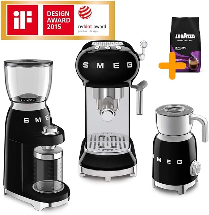 Amazon De Smeg Premium Bundle Espresso Siebtragermaschine Kaffeemaschine Mit Professionelle Milchschaum Duse Hochleistungs Kaffeemuhle Fein Mittel Grob Profi Induktions Milchaufschaumer 1kg Lavazza Gratis