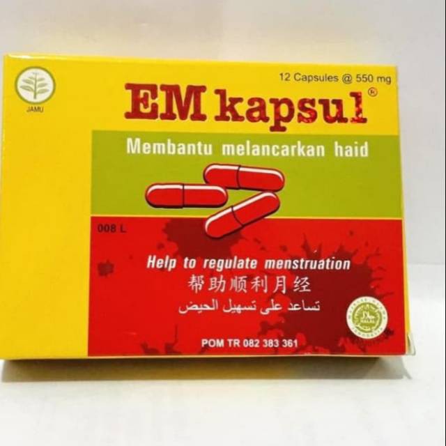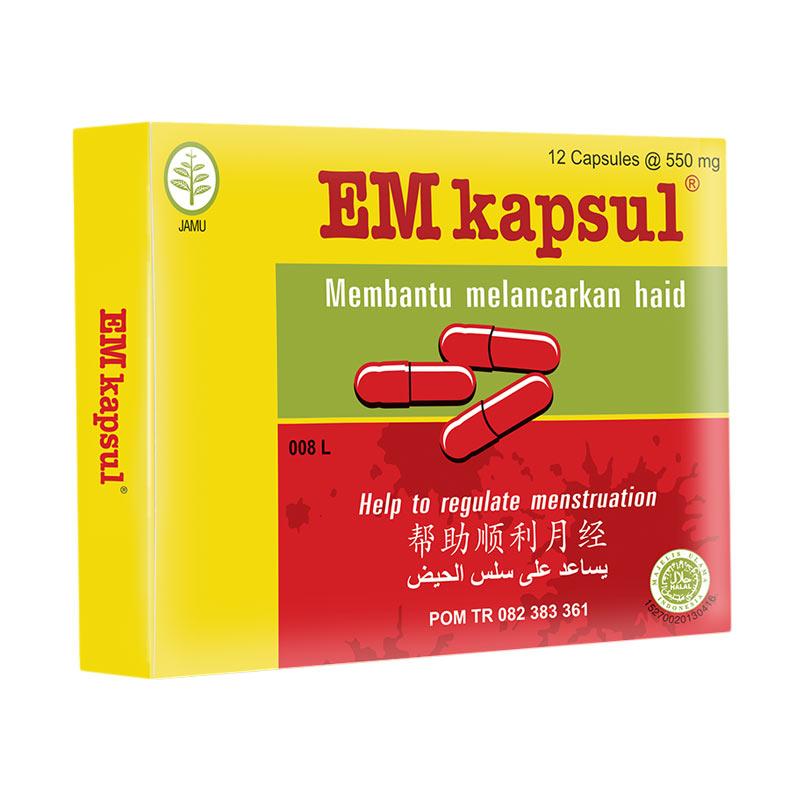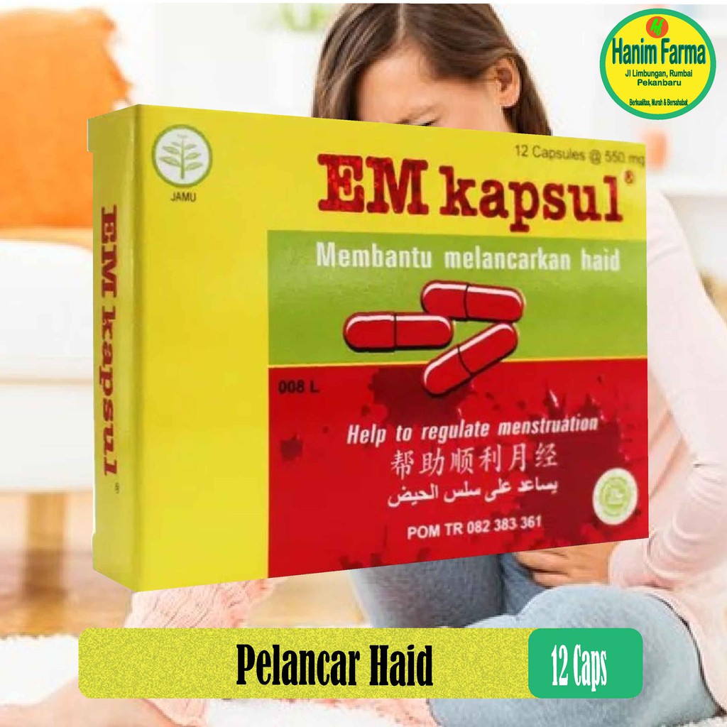 Posted on June 11 2018 July 29 2020. Posted on June 11 2018 July 29 2020. EM kapsul adalah obat herbal yang berfungsi melancarkan menstruasi dan meredakan nyeri haid.
